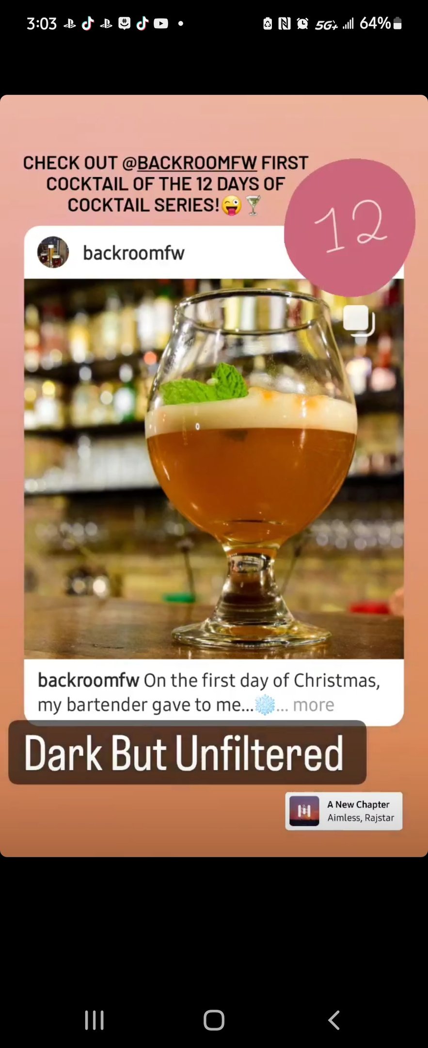 I believe the most amusing tasks that I had responsibility for were creating engaging and amusing stories and posts. These graphics whether it was an Instagram post, story, or a fun reel focused on a range of content from announcements of events, promotion of new menu items (for brunch, lunch, dinner, drinks, and The Back Room), and to even humorous posts that are “relatable.”